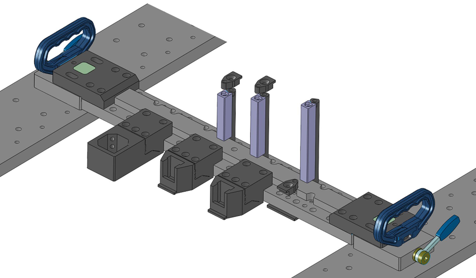 Die Befestigung auf dem Arbeitstisch erfolgt mittels zweier Befestigungssockel Art. 02 – FAST/B (die bereitgestellt werden).