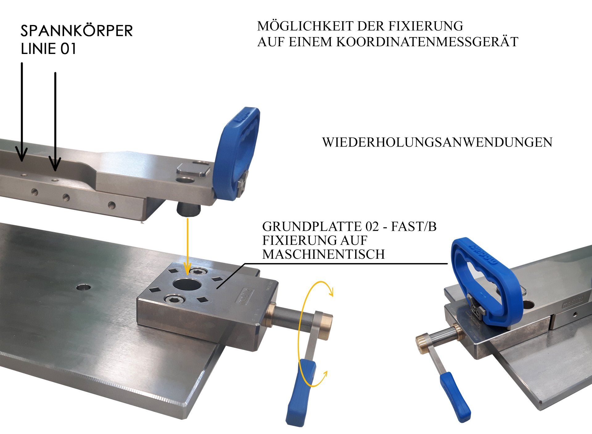 Das Werkstück wird mit den halterung 01 - SE oder mit den Spannkörpern der Linie 01 gespannt.