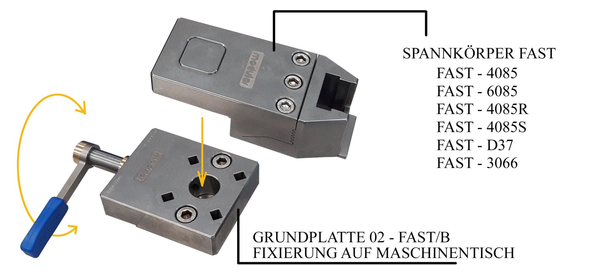 Die Befestigung auf dem Arbeitstisch erfolgt mittels des Befestigungssockels Art. 02 – FAST/B.