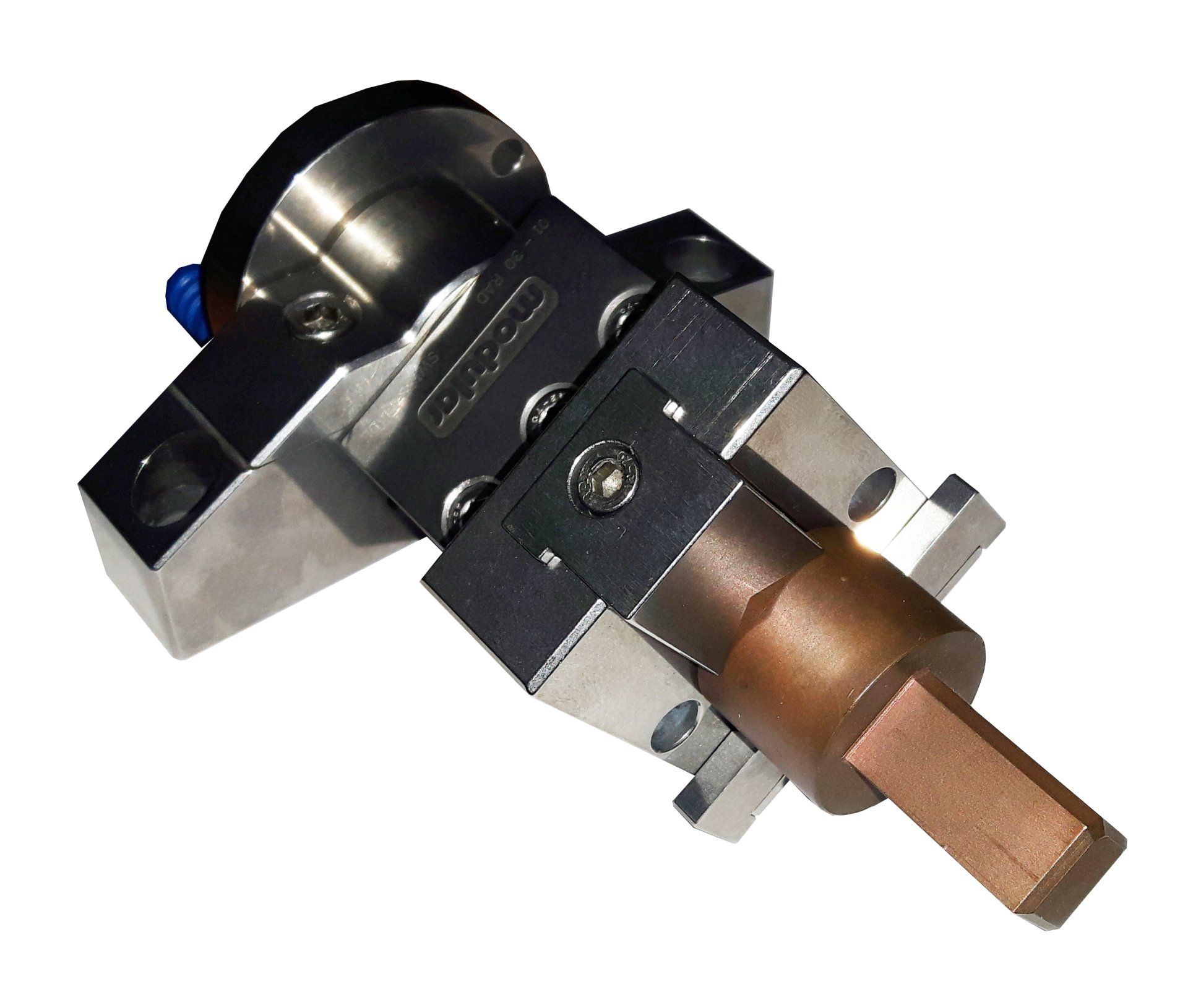 Der zweite wird auf der Werkstückauflage des Spannkörpers positioniert und ermöglicht so die Fixierung runder Werkstücke bzw. Scheiben.