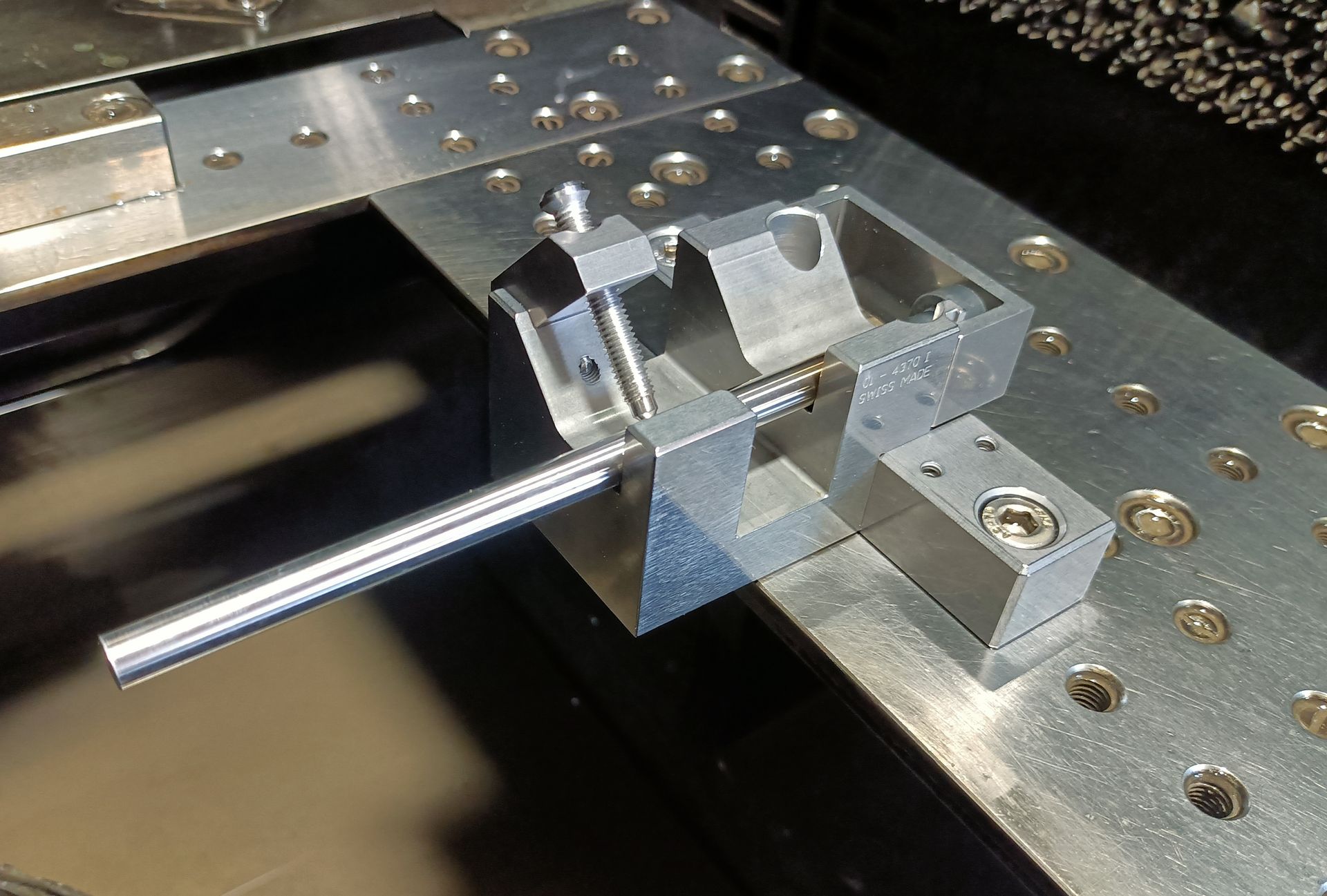 Ermöglicht die Befestigung von Standard-Einspritzdüsen, Extraktoren und Stempel bis D. 25 mm.