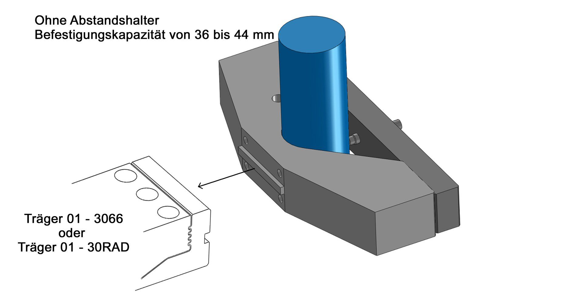 Ohne die Verwendung von Abstandshaltern reicht die Befestigungskapazität von 37 bis 44 mm.