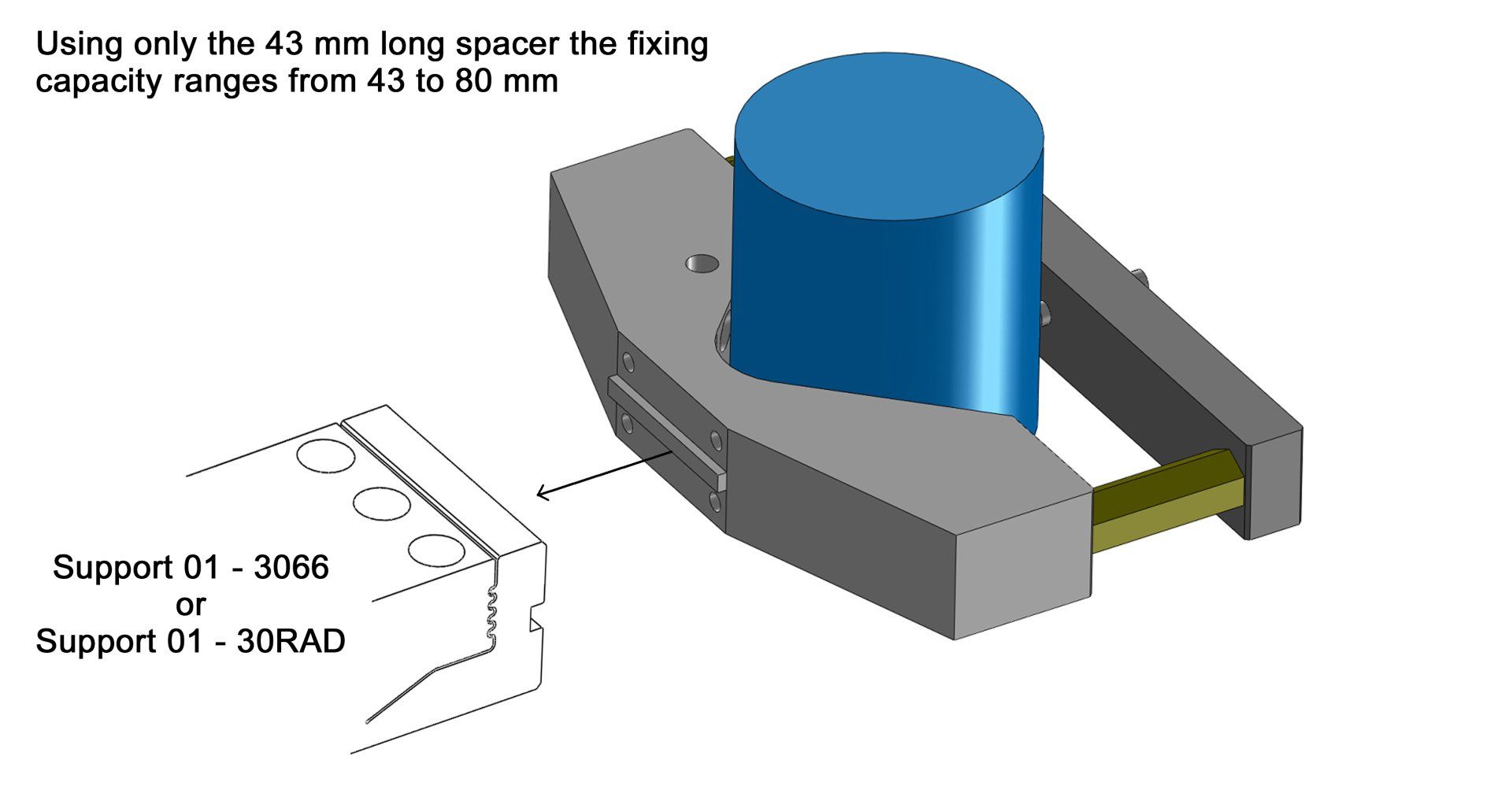 Using only the 43 mm long spacer the fixing capacity ranges from 43 to 80 mm.
