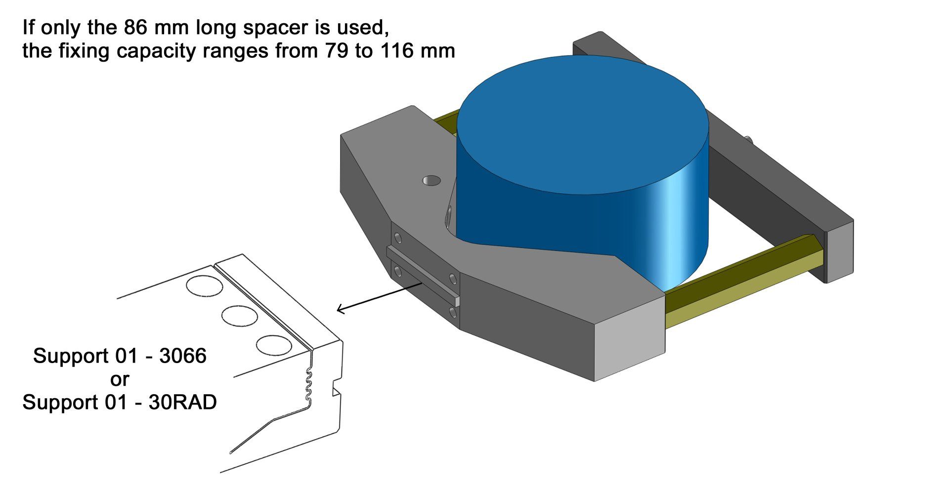 If only the 86 mm long spacer is used, the fixing capacity ranges from 79 to 116 mm.