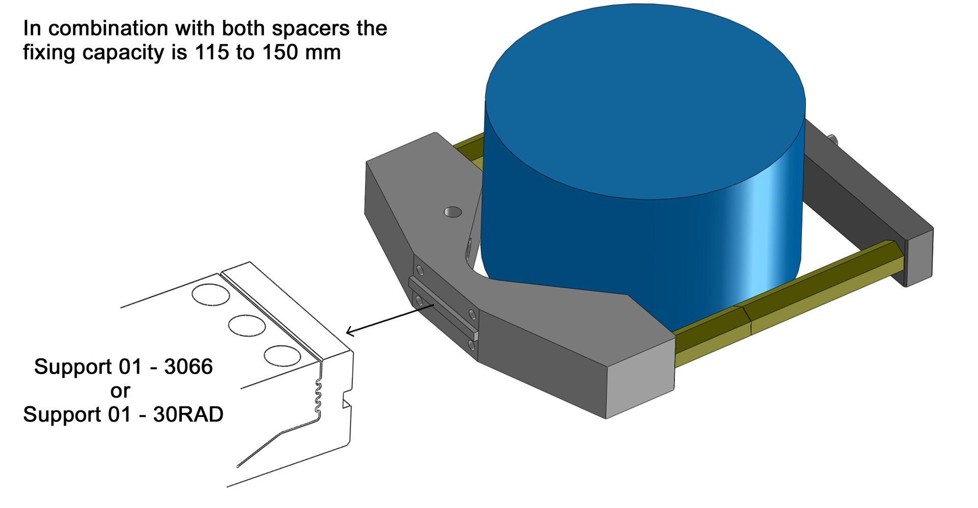 In combination with both spacers the fixing capacity is 115 to 150 mm.