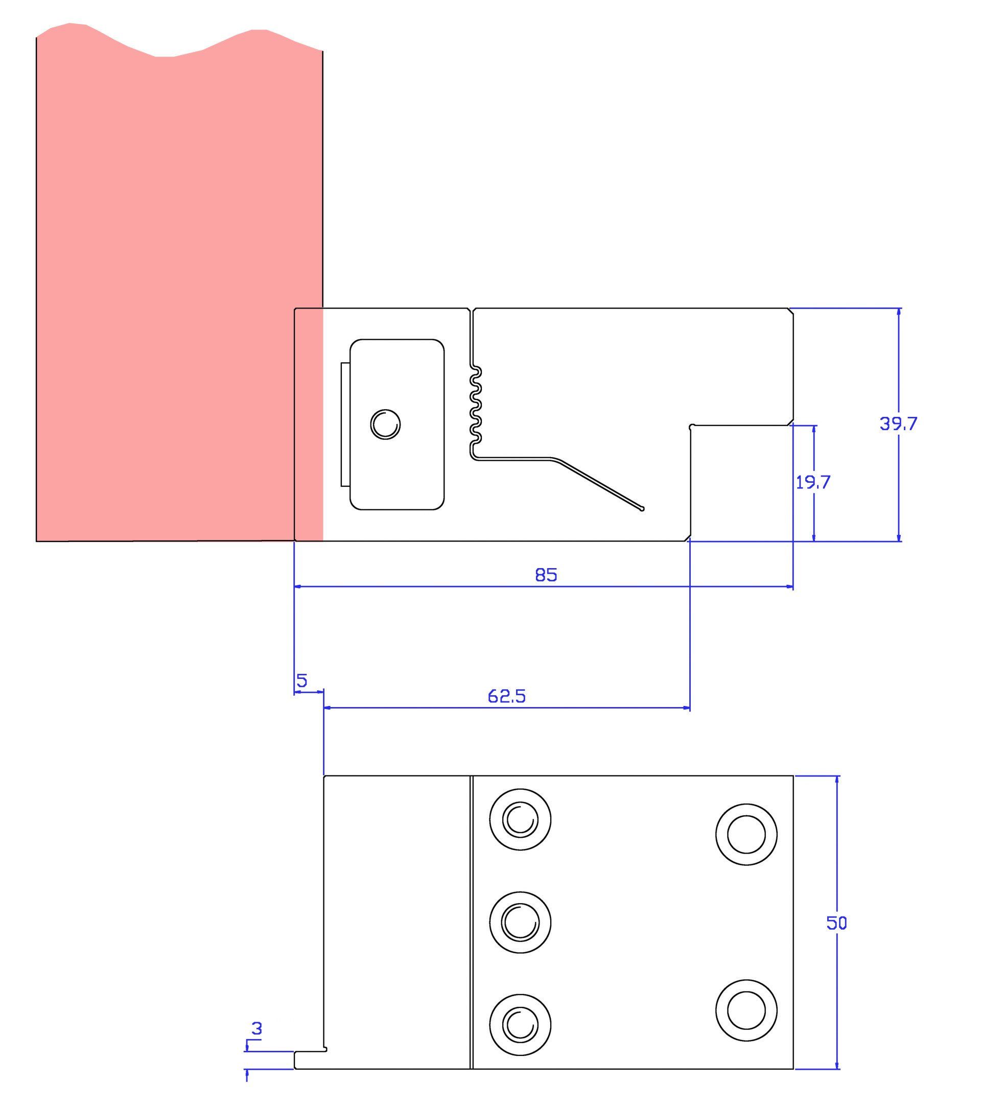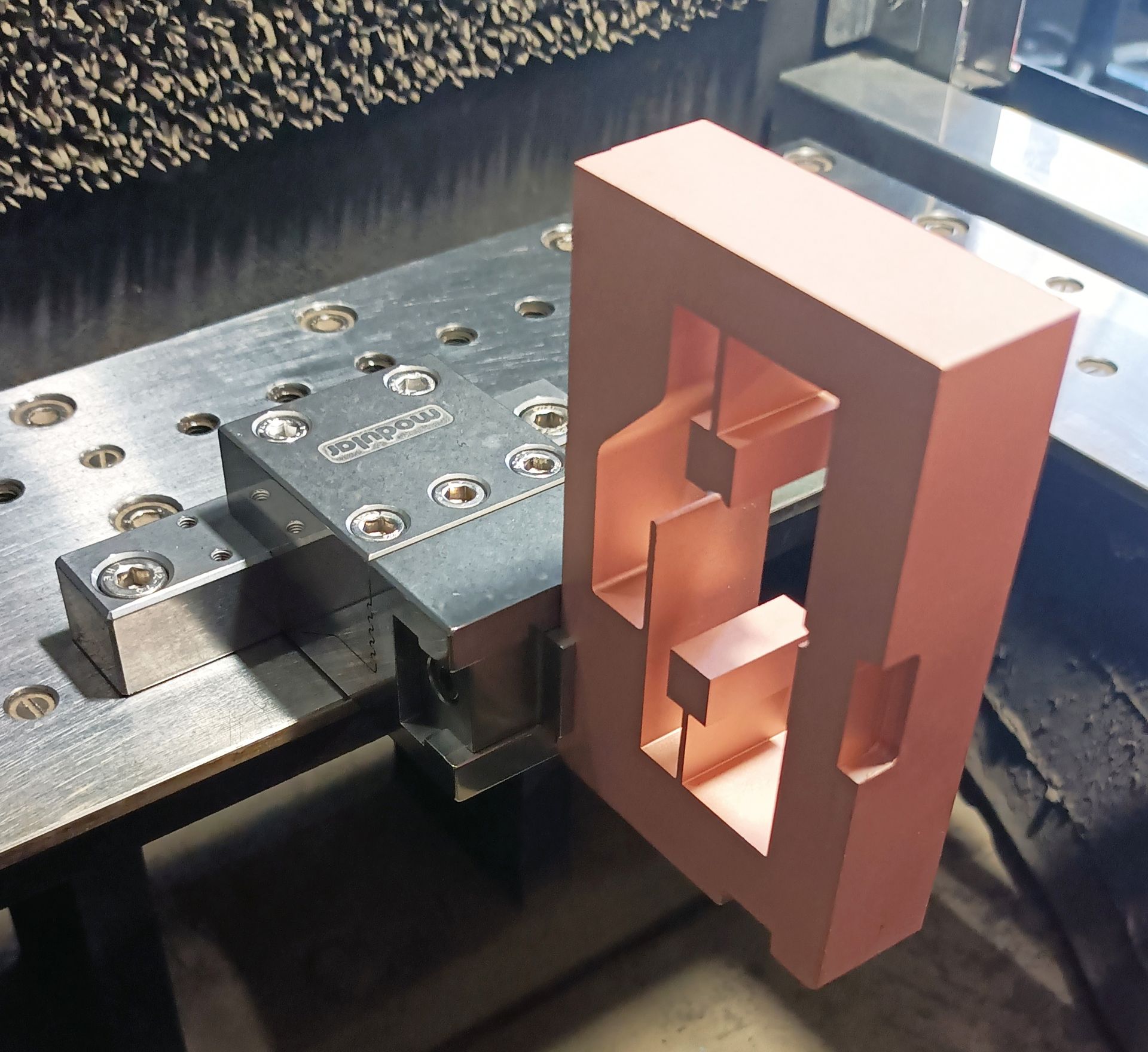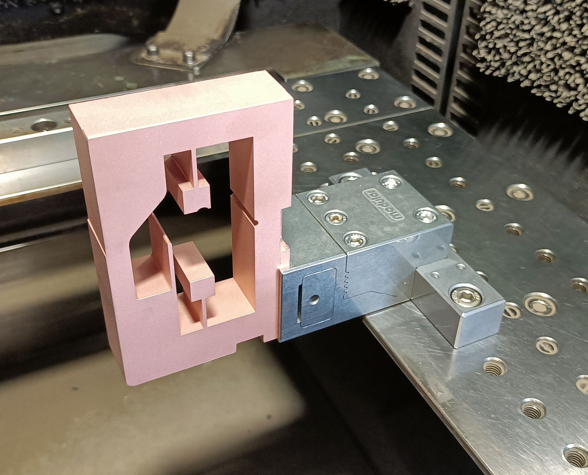 Corpo morsa regolabile con altezza 40 mm. Ruotato di 90°.