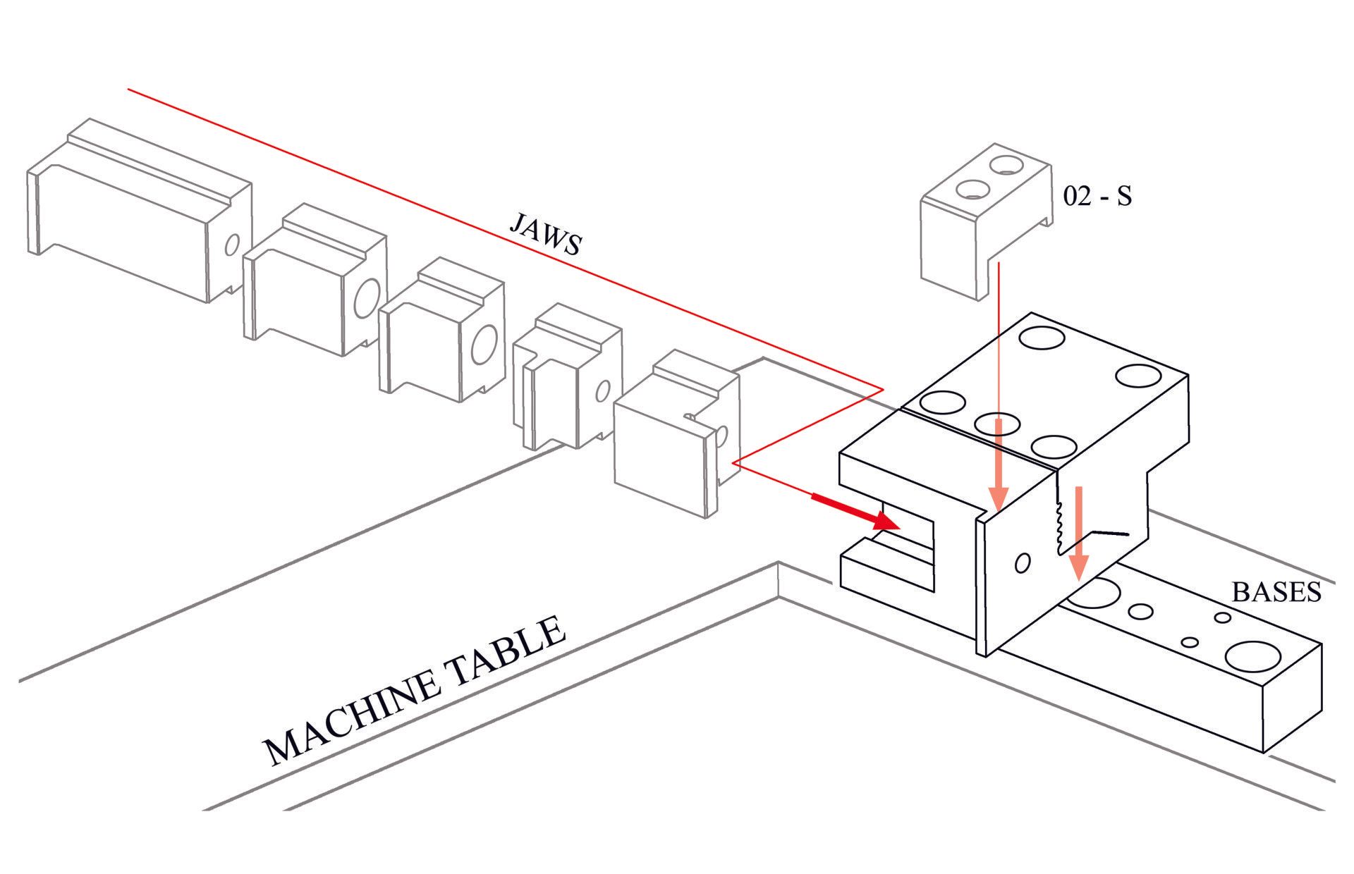 Per l'ancoraggio alla tavola macchina è necessaria una base della linea 02 o di una traversa.