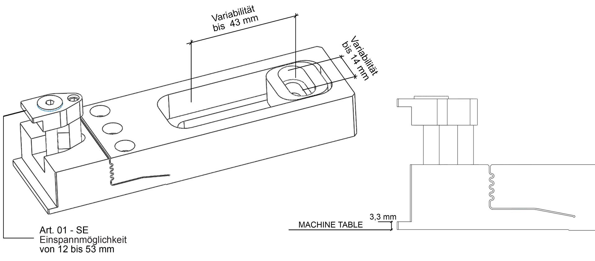 Technische Eigenschaften: Drehung gegenüber dem Maschinentisch.