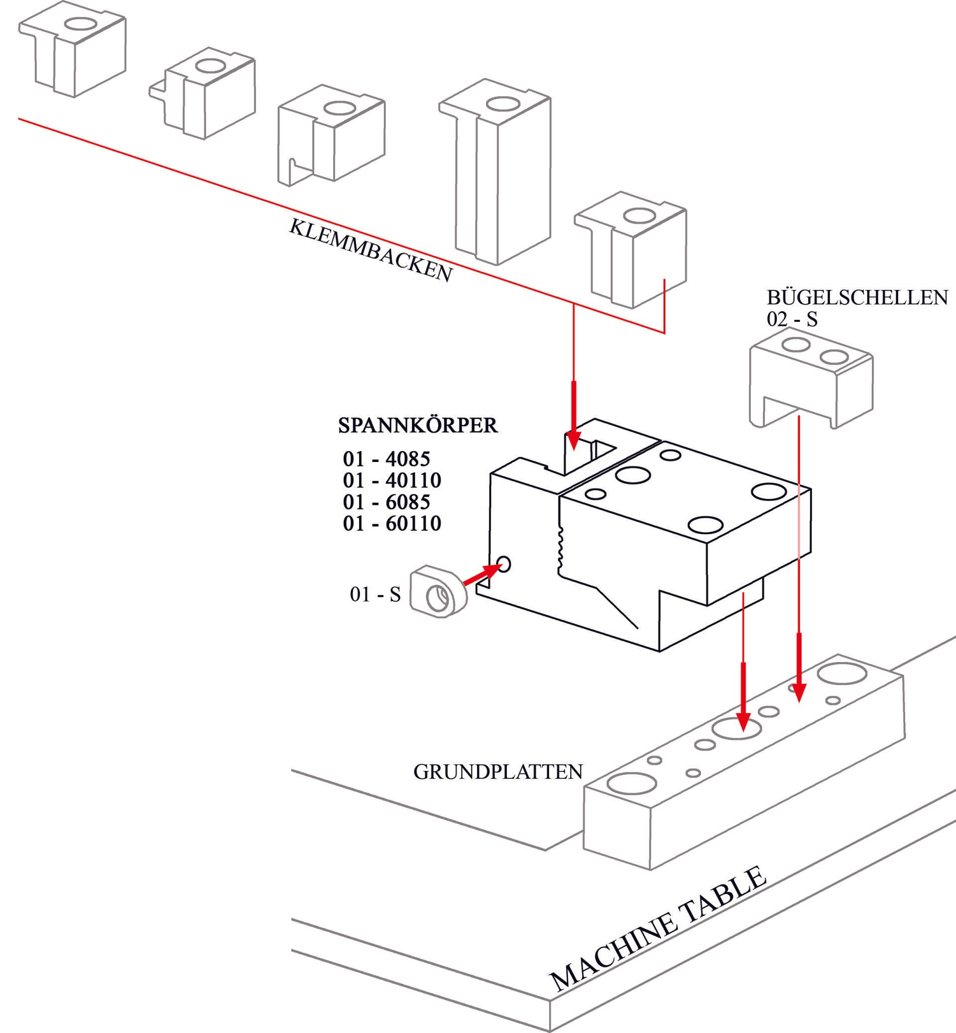 Befestigungskapazität je nach verwendeter Klemmbacke.